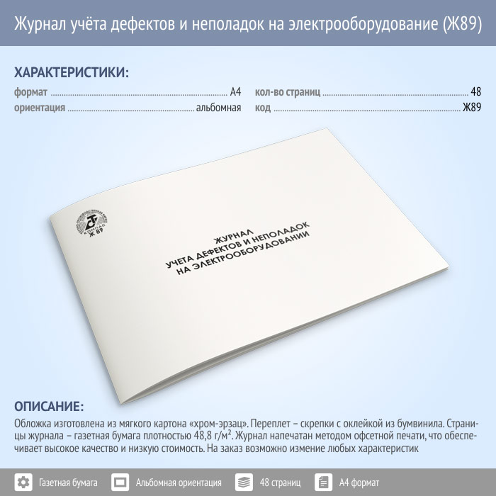 Журнал учета дефектов и неполадок электрооборудования (48 стр., Ж89) в Чите купить