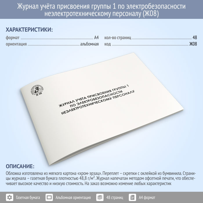 Журнал учета присвоения группы 1 по электробезопасности неэлектротехническому персоналу (48 стр., Ж08) в Чите купить