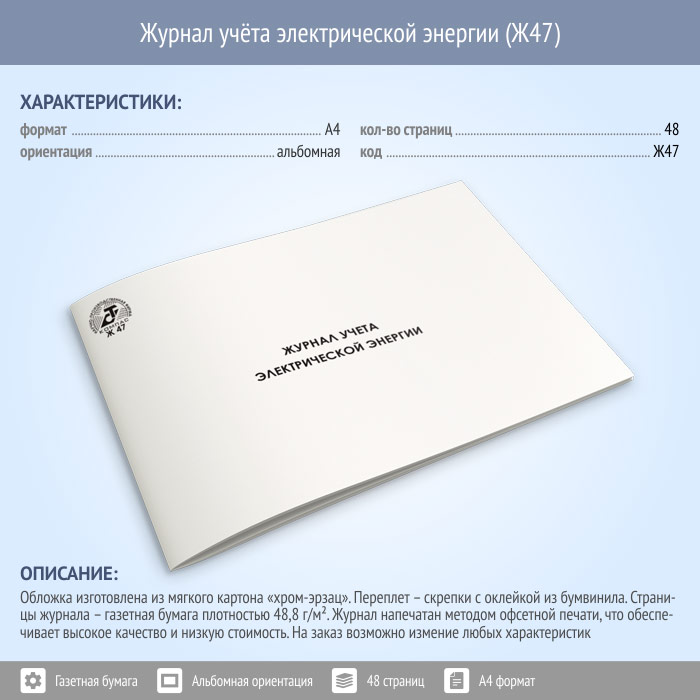 Журнал учета электрической энергии (48 стр., Ж47) в Чите купить