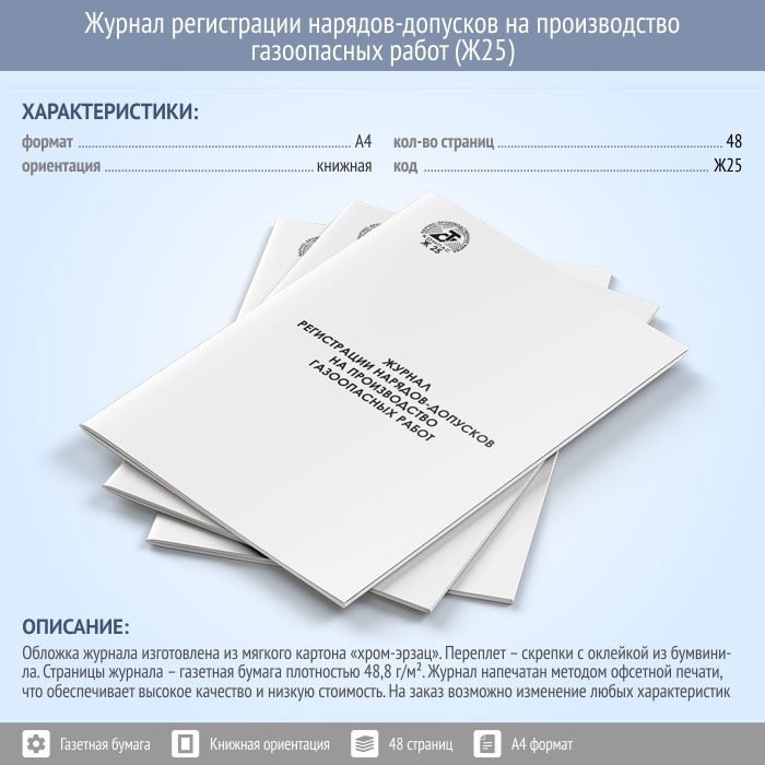 Журнал регистрации нарядов-допусков на производство газоопасных работ (48 стр., Ж25) в Чите купить