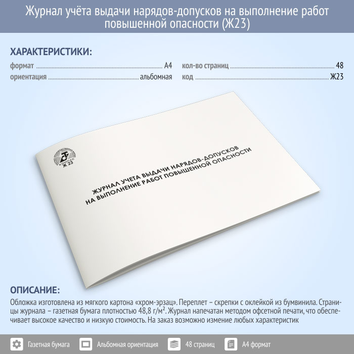 Журнал учета выдачи нарядов-допусков на выполнение работ повышенной опасности (48 стр., Ж23) в Чите купить