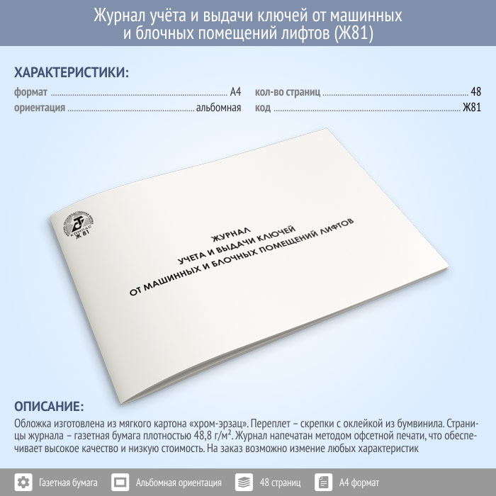 Журнал учета и выдачи ключей от машинных и блочных помещений лифтов (48 стр., Ж81) в Чите купить