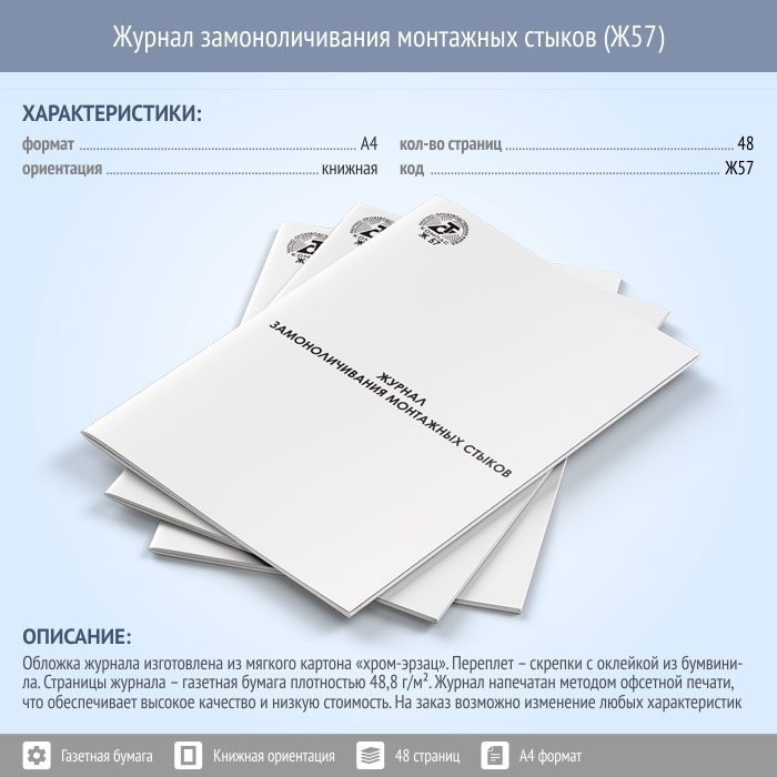 Журнал замоноличивания монтажных стыков (48 стр., Ж57) в Чите купить