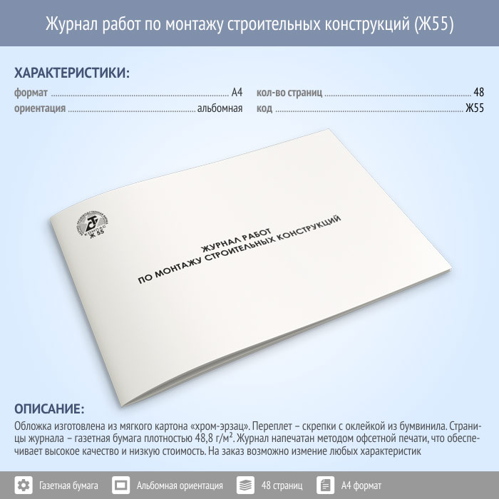 Журнал работ по монтажу строительных конструкций (48 стр., Ж55) в Чите купить