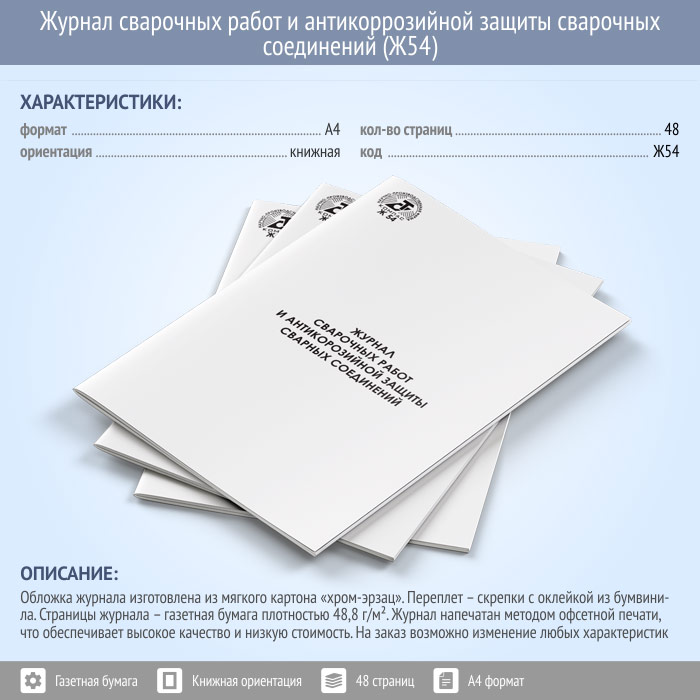 Журнал сварочных работ и антикоррозийной защиты сварочных соединений (48 стр., Ж54) в Чите купить