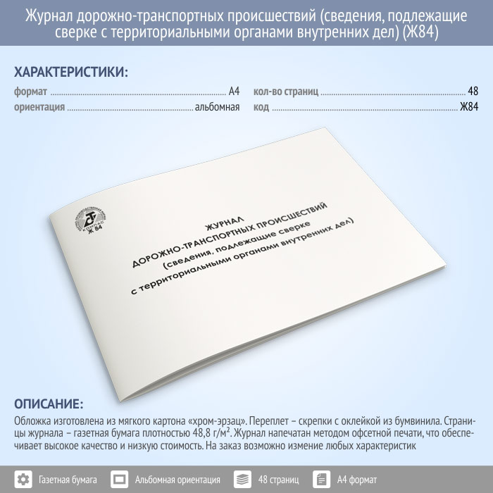 Журнал дорожно-транспортных происшествий (сведения, подлежащие сверке с территориальными органами внутренних дел) (48 стр., Ж84) в Чите купить