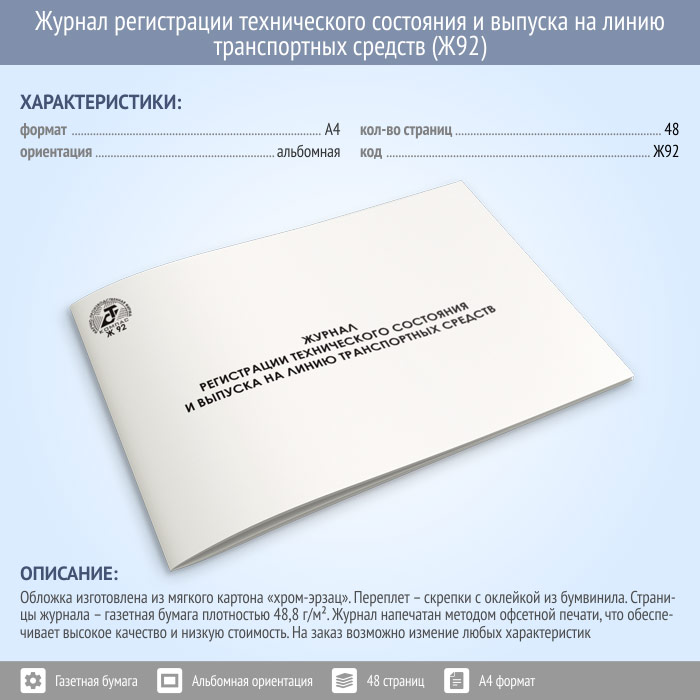 Журнал регистрации технического состояния и выпуска на линию транспортных средств (48 стр., Ж92) в Чите купить