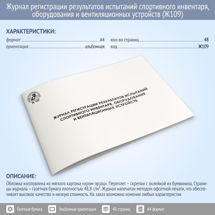 Журнал регистрации результатов испытаний спортивного инвентаря, оборудования и вентиляционных устройств (48 стр., Ж109) в Чите купить