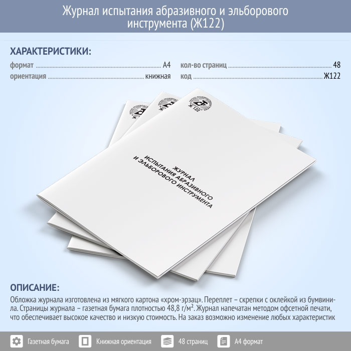 Журнал испытания абразивного и эльборового инструмента (48 стр., Ж122) в Чите купить