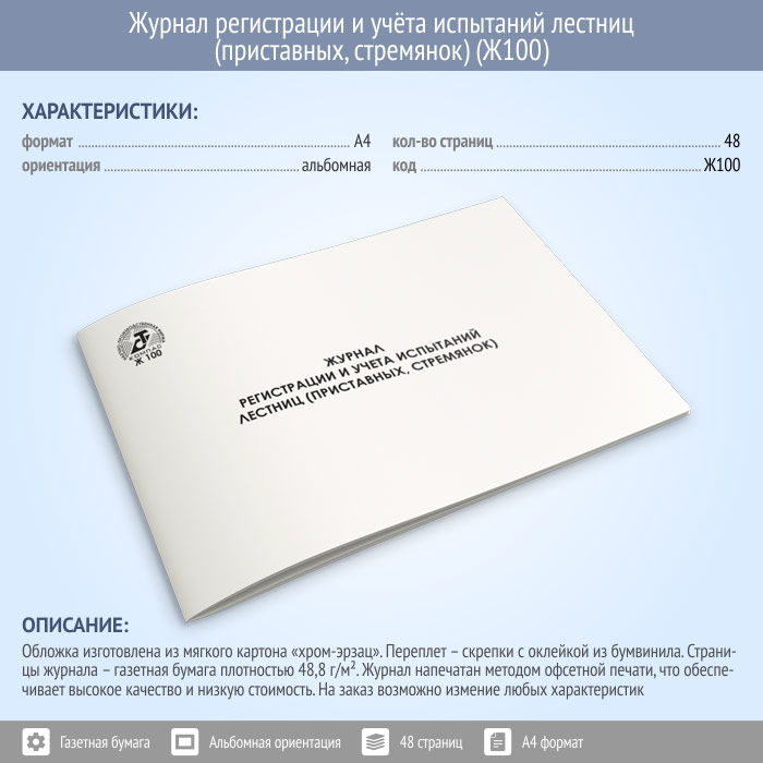 Журнал регистрации и учета испытаний лестниц (приставных, стремянок) (48 стр., Ж100) в Чите купить